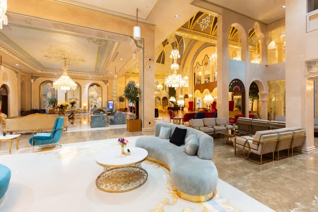 فرصت دیدن تکتک فضاهای هتل را غنیمت میشمارم. قلم برای به تصویر کشیدن این هنر عاجز است، زیرا هر گوشهاش دروازهای است که بازدیدکننده را به دنیایی فراتر از زمان هدایت میکند و لبها را به تحسین میگشاید.